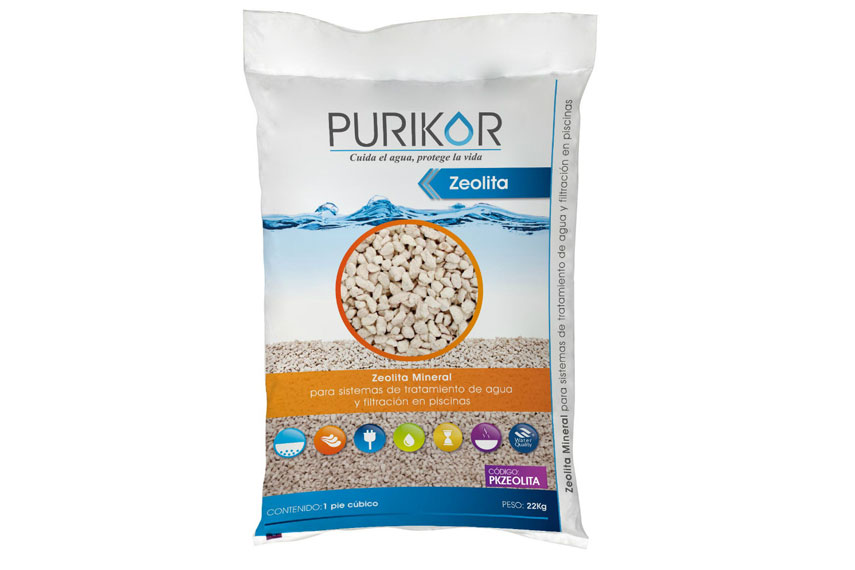 "Zeolita" que es el medio de filtración granular con el mejor desempeño, hecho a base de un mineral con propiedades únicas y la cual está diseñada tanto para sistemas de tratamiento de agua, como para filtración en piscinas.